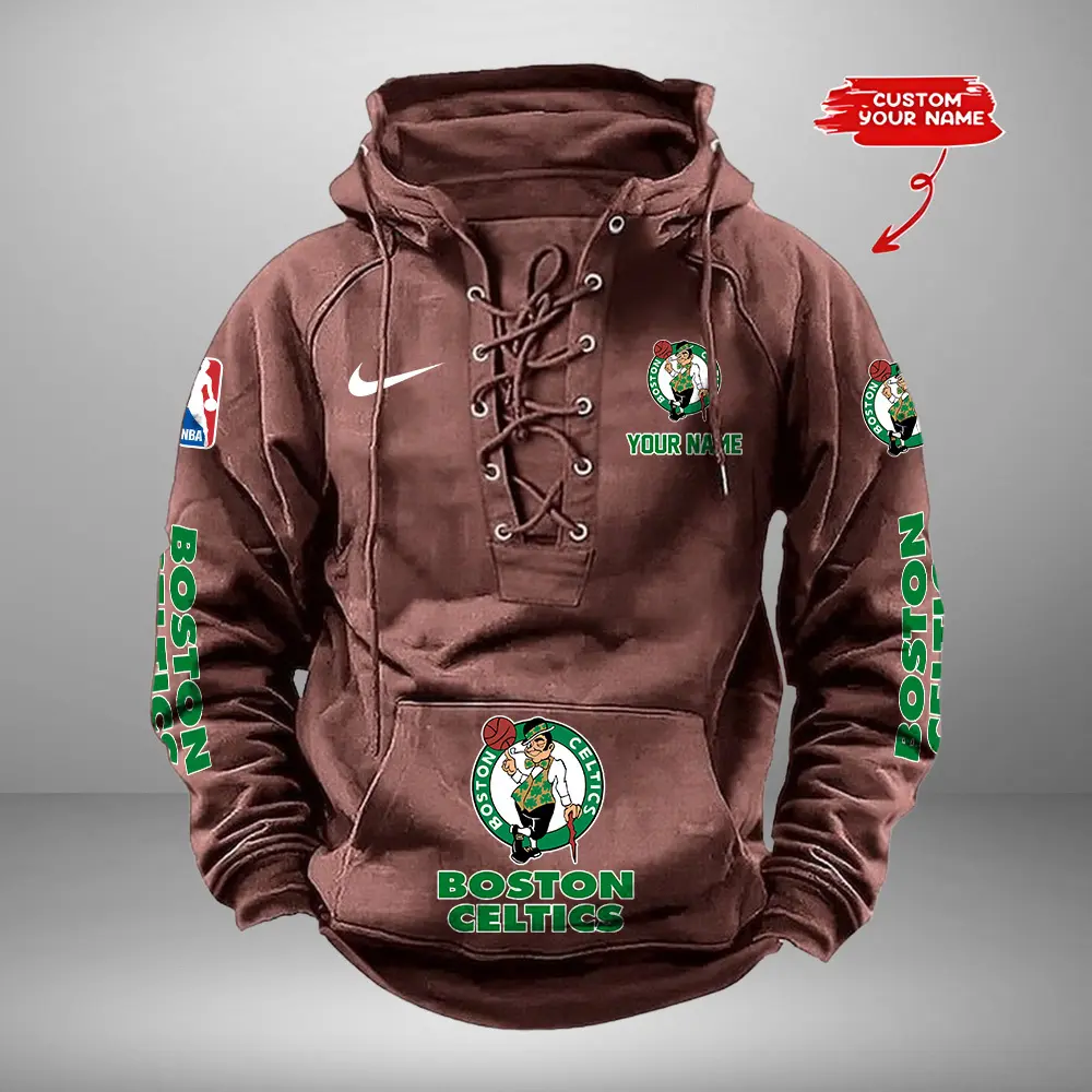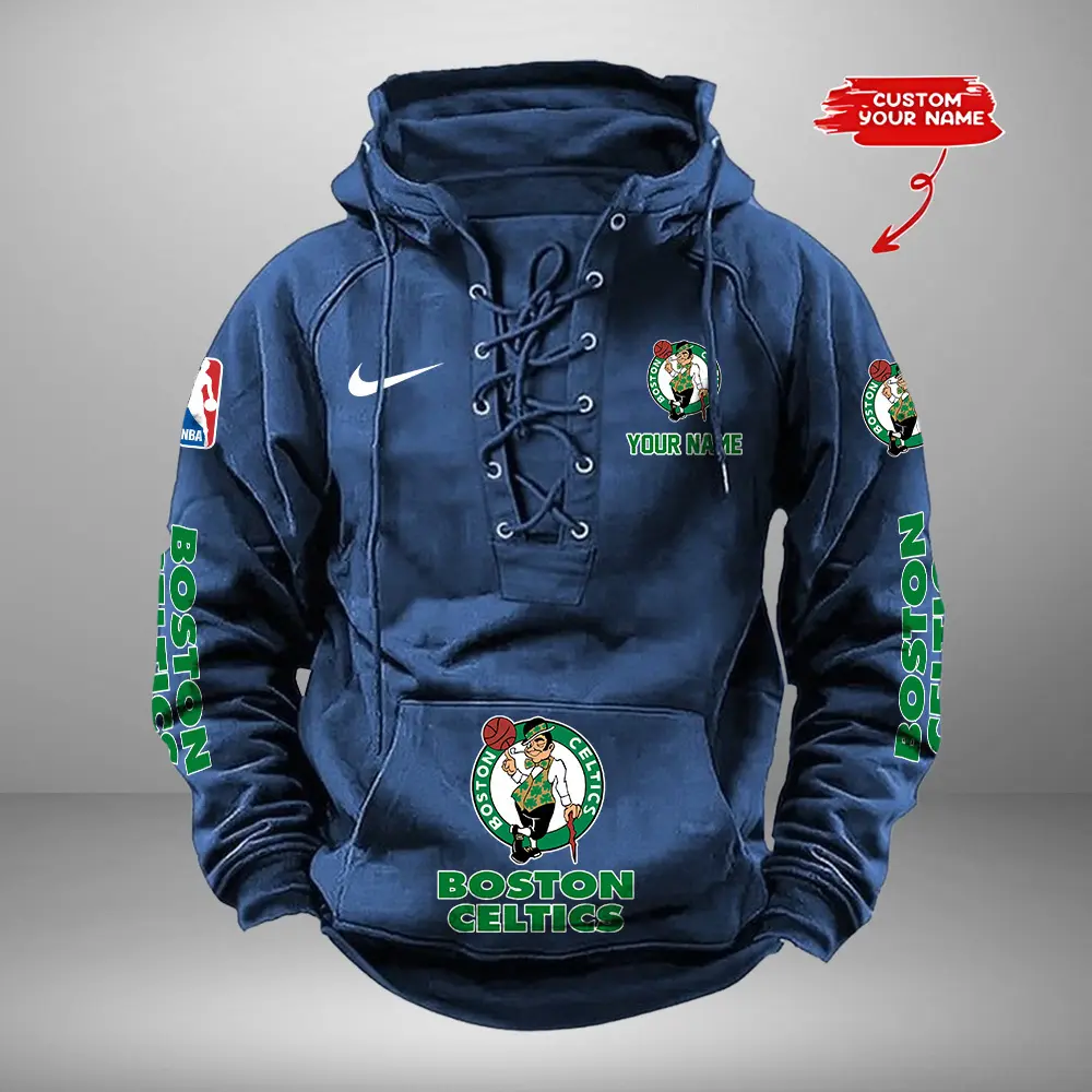 Boston Celtics Personalized NBA Swoosh Lace Up Hoodie Vintage Retro Hoodie