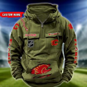 Calgary Flames NHL Hockey Vintage Quarter Zip Hoodie Retro Hoodie Custom Name WRH1003