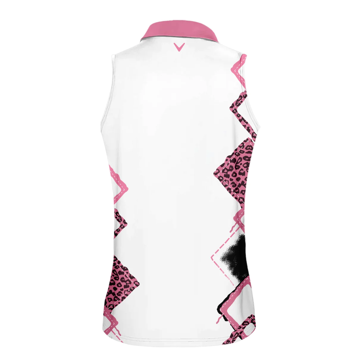 Callaway 79th U.S. Women’s Open Lancaster Pink Leopard Pattern White Sleeveless Polo Shirt