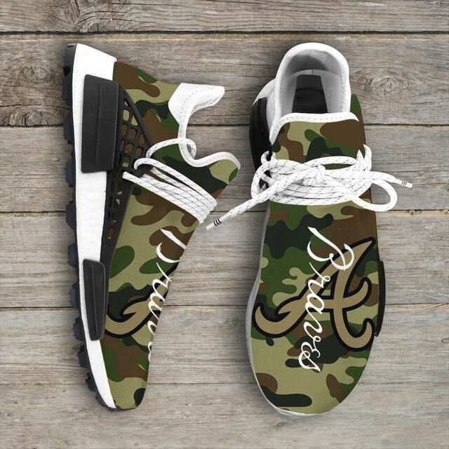 Camo Camouflage Atlanta Braves MLB NMD Human Race Sneakers Running Shoes Perfect Gift Custom Shoes Fan NMD Sneakers