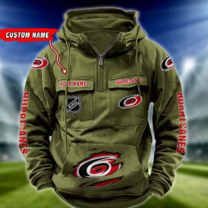 Carolina Hurricanes NHL Hockey Vintage Quarter Zip Hoodie Retro Hoodie Custom Name WRH1004