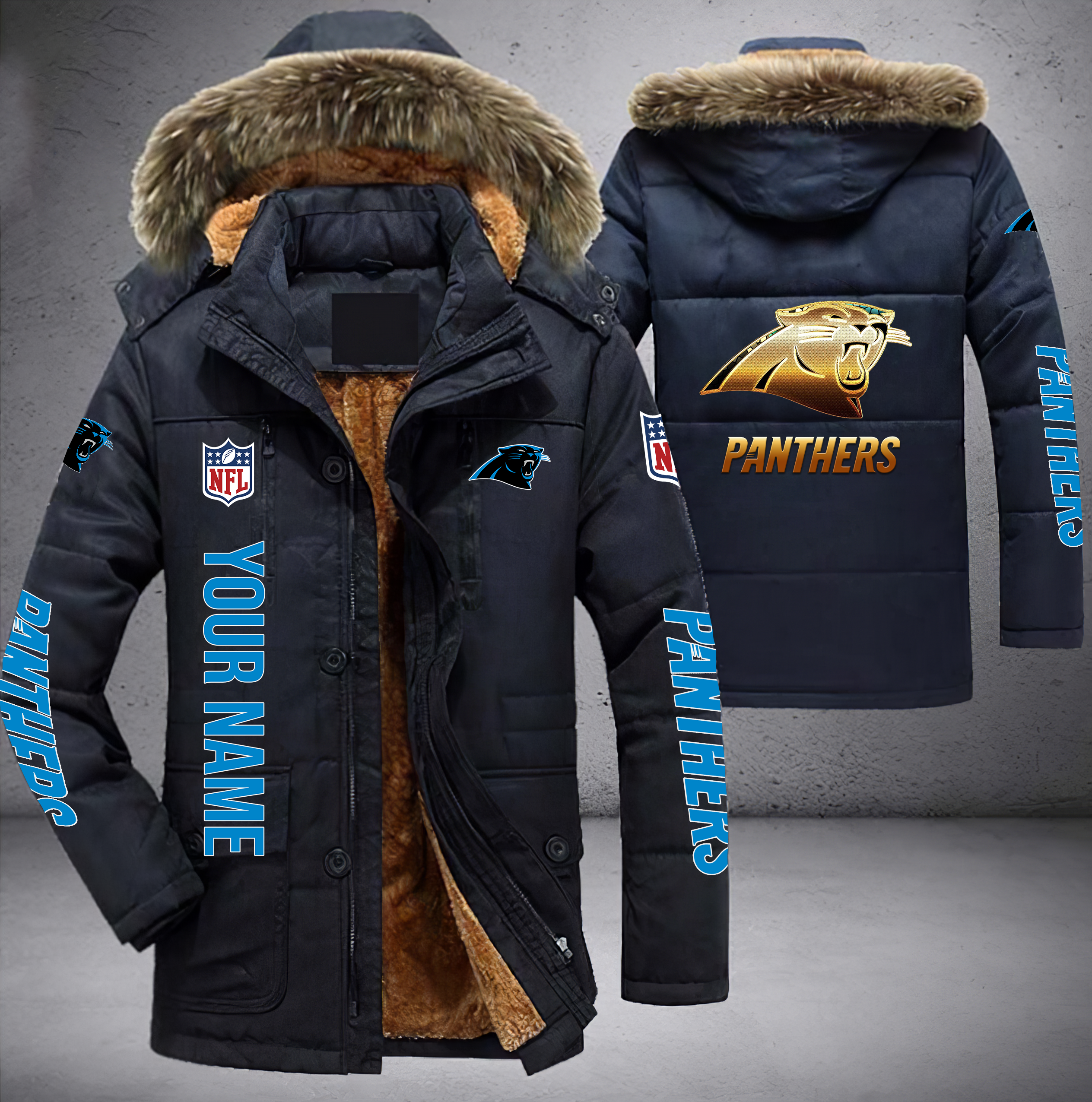 Carolina Panthers NFL Personalized Golden Logo Parka Jacket Fleece Coat Winter