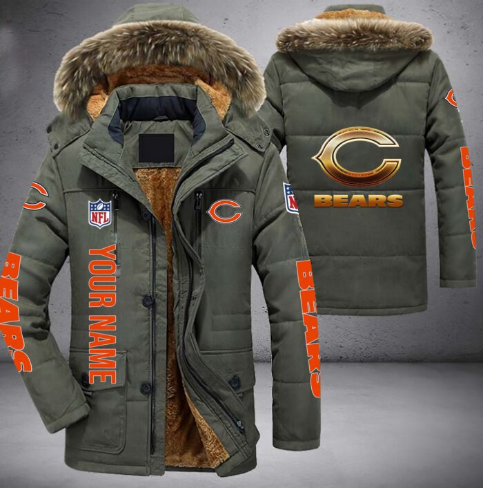 Chicago Bears NFL Personalized Golden Logo Parka Jacket Fleece Coat Winter