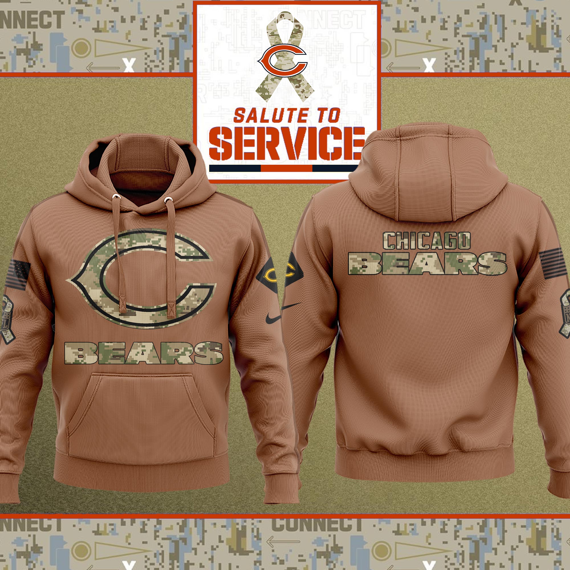 Chicago Bears NFL Salute To Service 2023 Veteran New Logo 3D Hoodie HSL1070