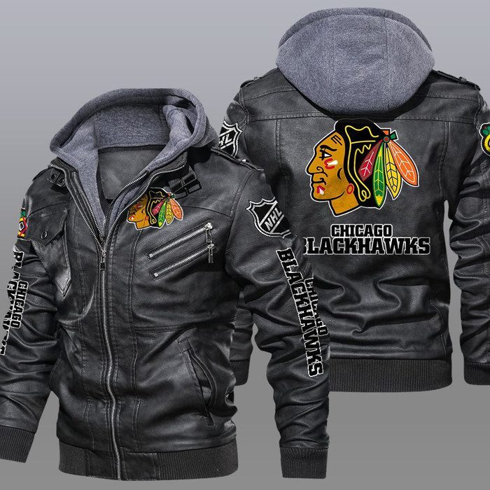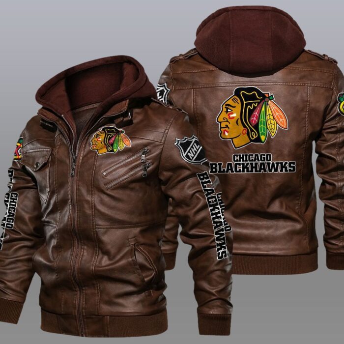 Chicago Blackhawks Black Brown Leather Jacket LIZ164