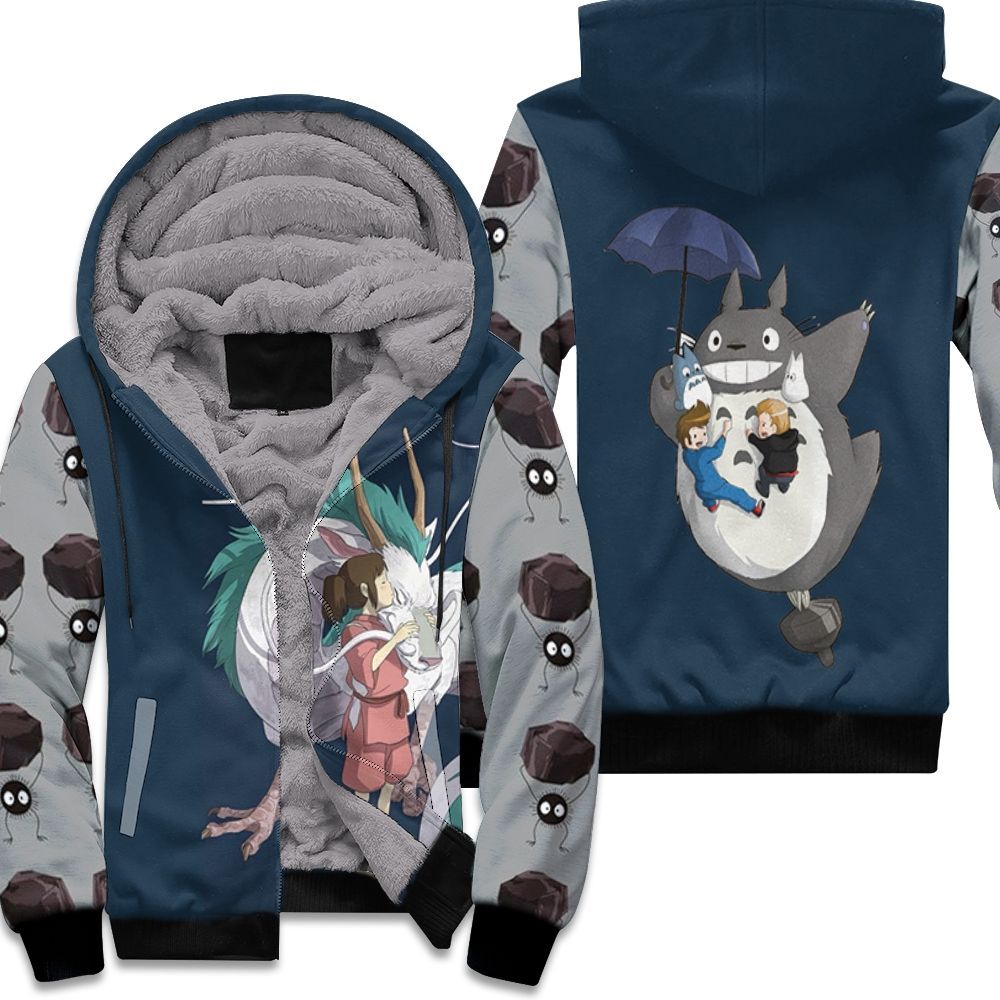 Chihiro Kiss Haku Cute Scene For Spirited Away Studio Ghibli Fan Unisex Fleece Hoodie