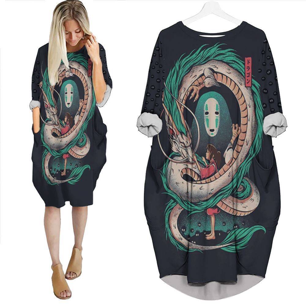 Chihiro Ogino Love Haku Nigihayami Kohaku Nushi No Face Spirited Away Studio Ghibli Fan Batwing Pocket Dress PD3598