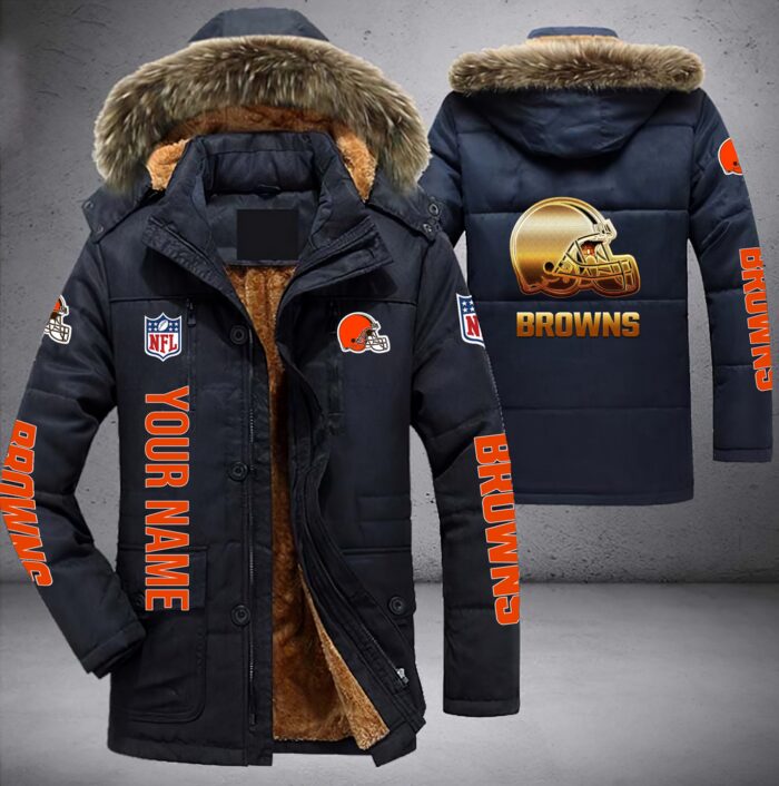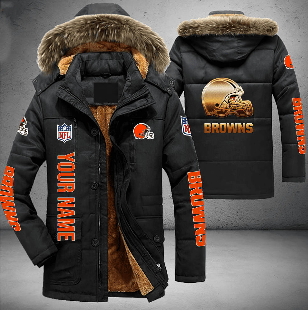 Cleveland Browns NFL Personalized Golden Logo Parka Jacket Fleece Coat Winter