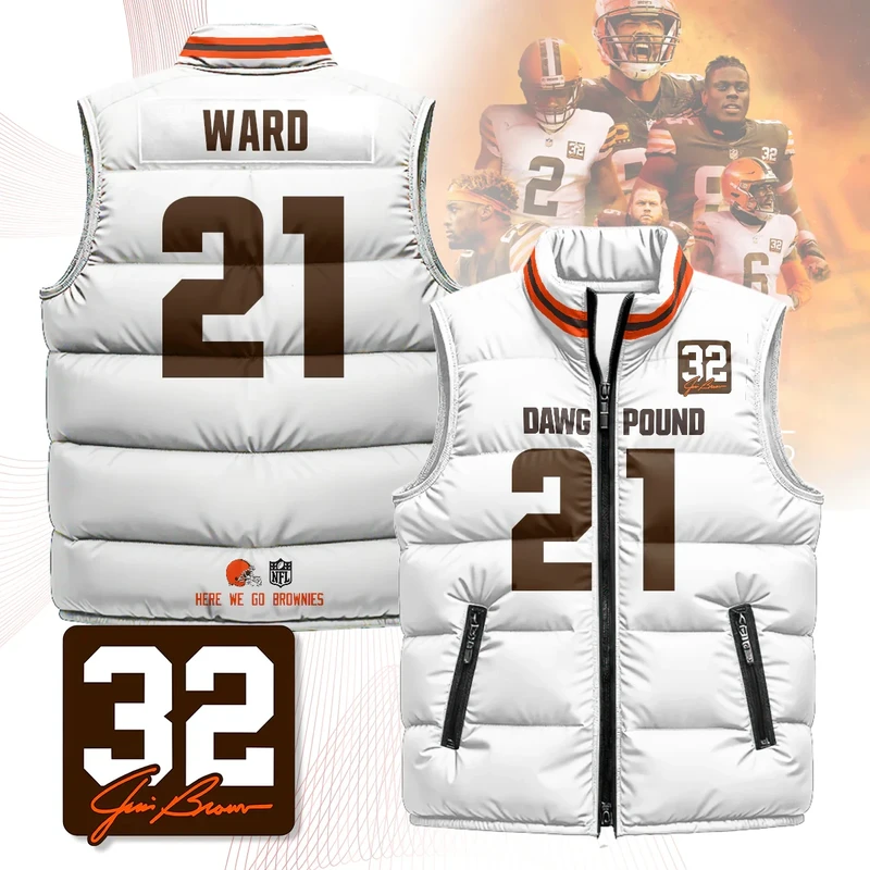 Cleveland Browns Unisex Puffer Vest Sleeveless Down Jacket- White / Denzel Ward-21