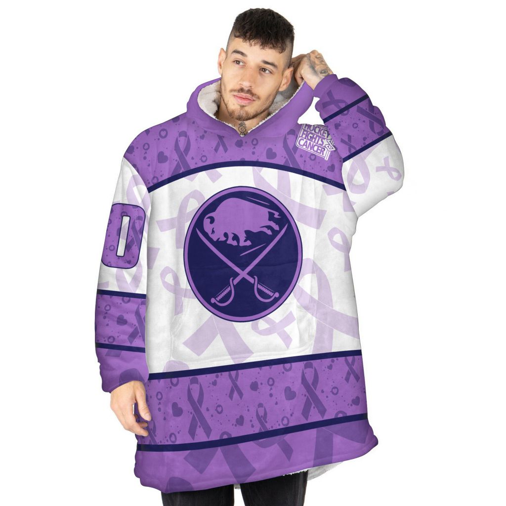 Custom NHL Buffalo Sabres Lavender Hockey Fights Cancer Oodie Blanket Hoodie Wearable Blanket