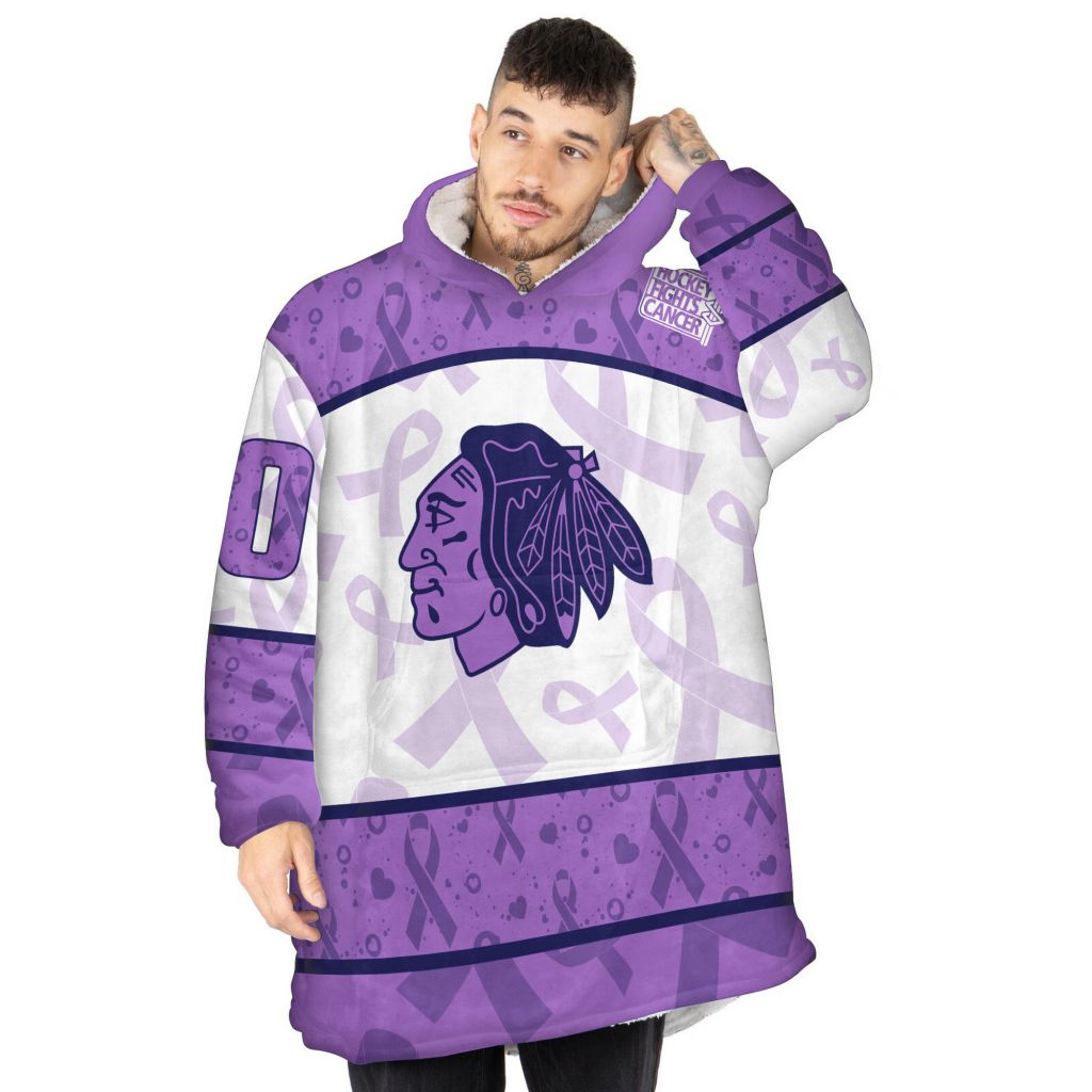 Custom NHL Chicago Blackhawks Lavender Hockey Fights Cancer Oodie Blanket Hoodie Wearable Blanket