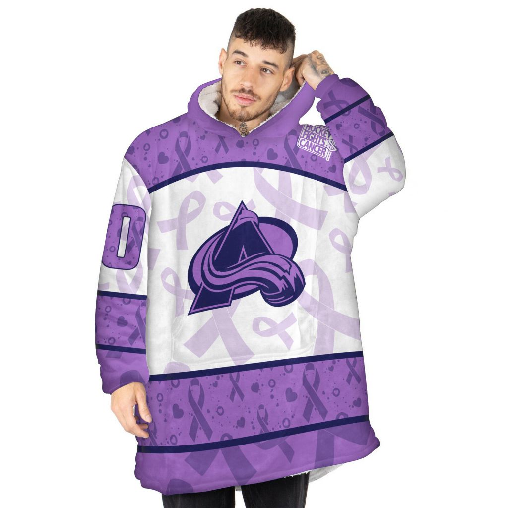 Custom NHL Colorado Avalanche Lavender Hockey Fights Cancer Oodie Blanket Hoodie Wearable Blanket