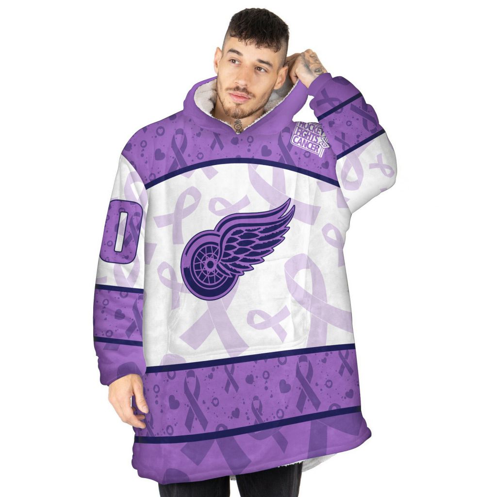 Custom NHL Detroit Red Wings Lavender Hockey Fights Cancer Oodie Blanket Hoodie Wearable Blanket
