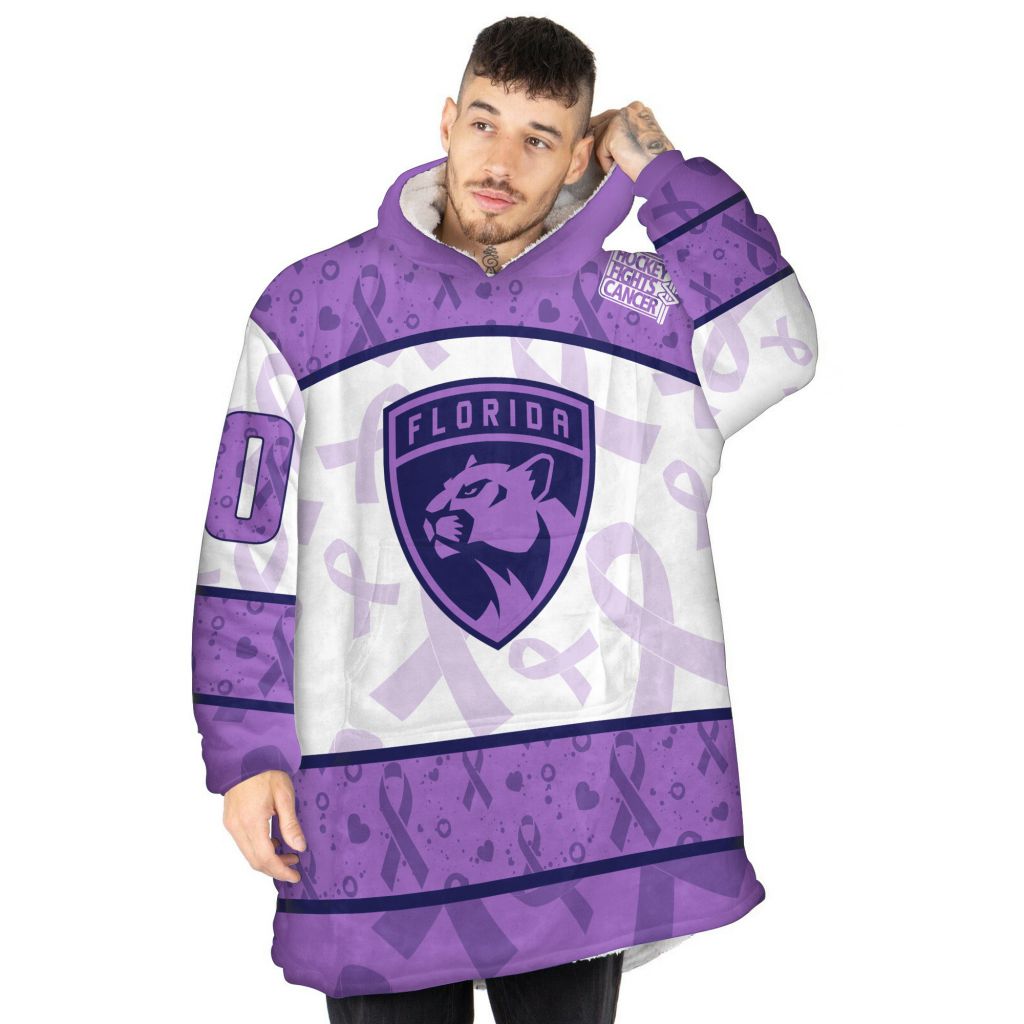 Custom NHL Florida Panthers Lavender Hockey Fights Cancer Oodie Blanket Hoodie Wearable Blanket