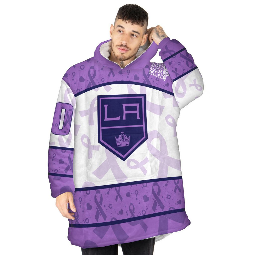Custom NHL Los Angeles Kings Lavender Hockey Fights Cancer Oodie Blanket Hoodie Wearable Blanket