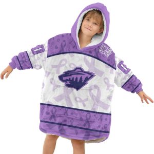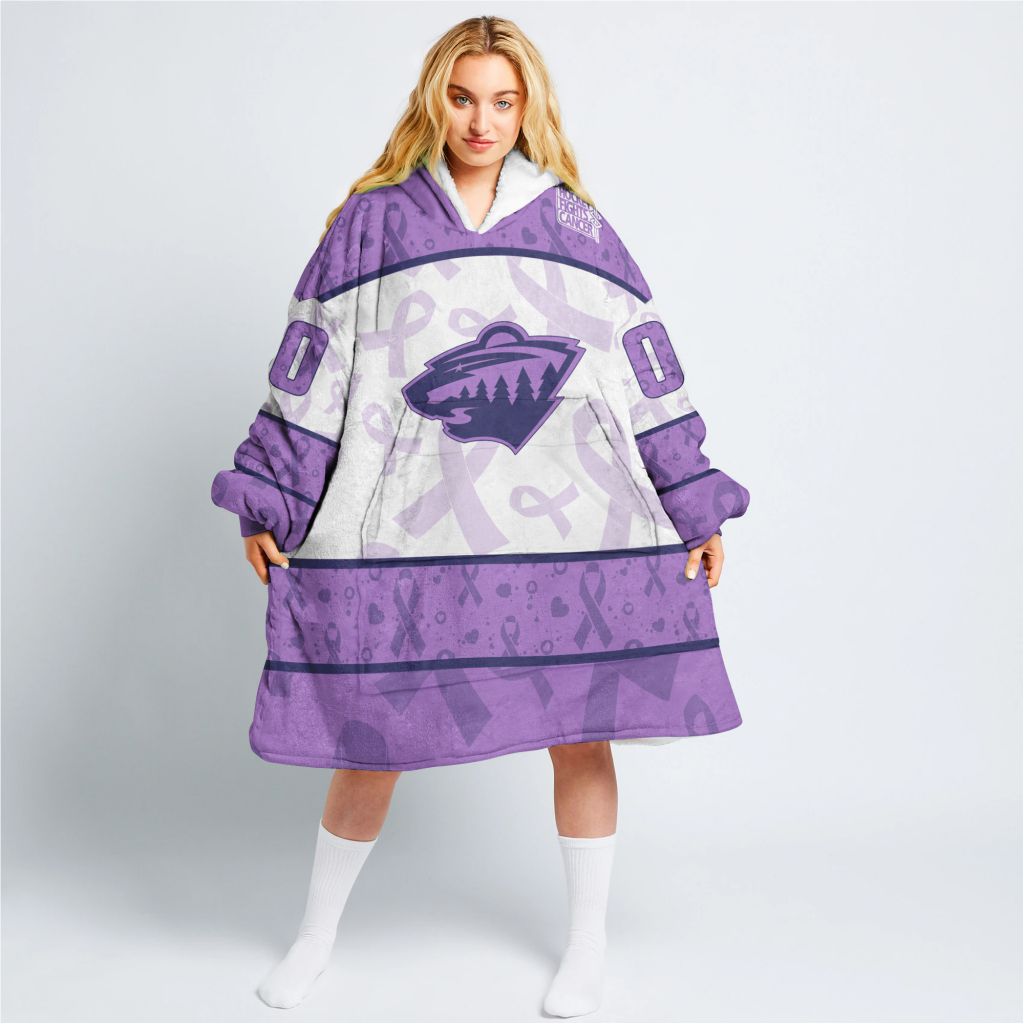 Custom NHL Minnesota Wild Lavender Hockey Fights Cancer Oodie Blanket Hoodie Wearable Blanket