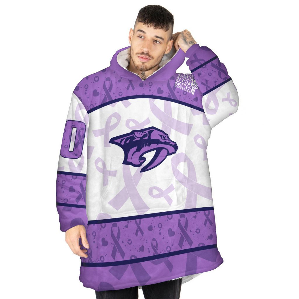 Custom NHL Nashville Predators Lavender Hockey Fights Cancer Oodie Blanket Hoodie Wearable Blanket
