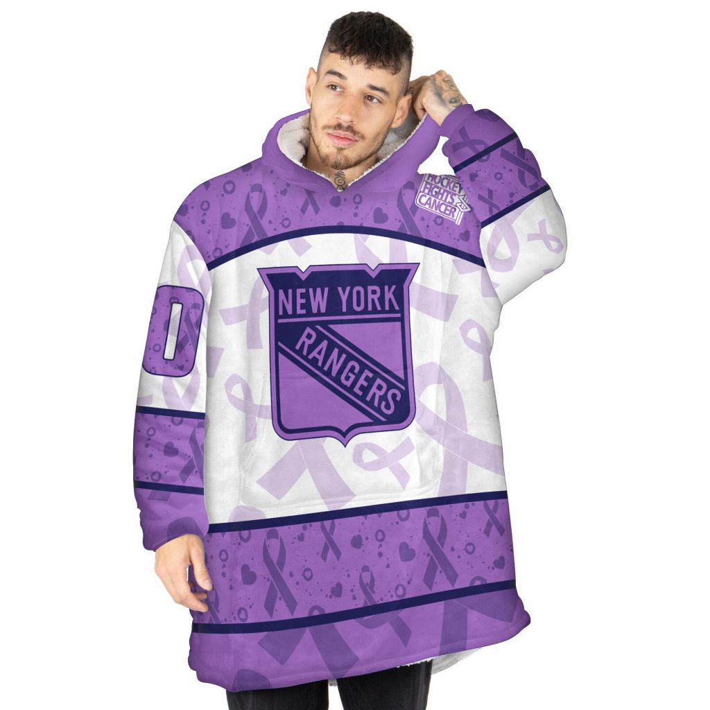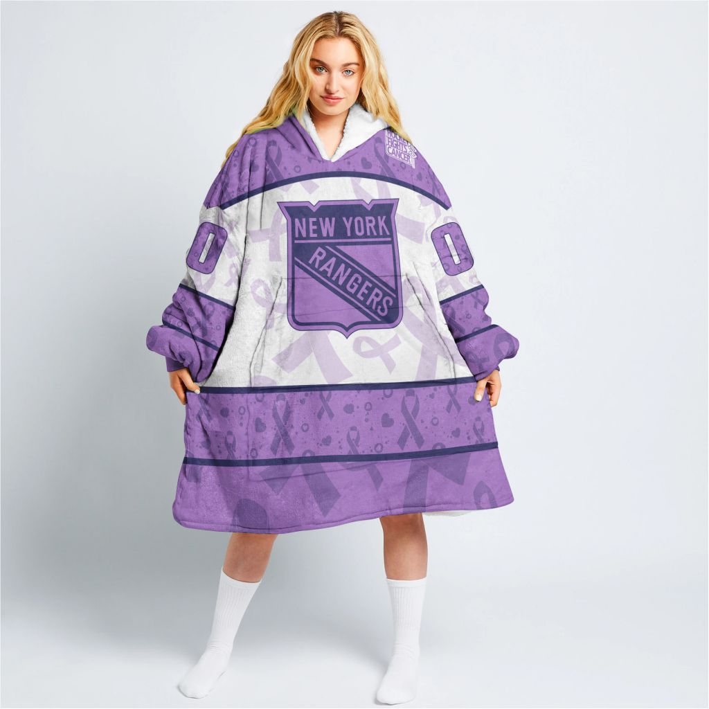 Custom NHL New York Rangers Lavender Hockey Fights Cancer Oodie Blanket Hoodie Wearable Blanket