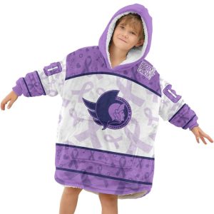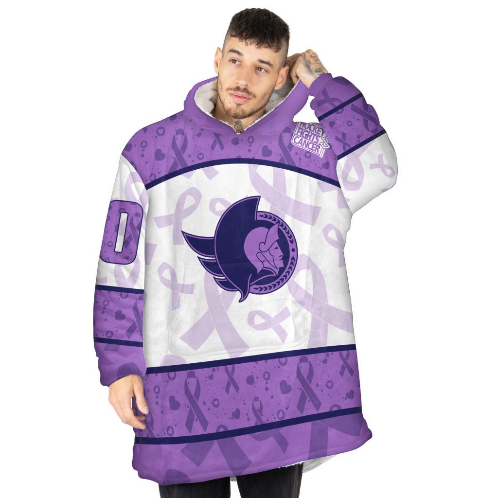 Custom NHL Ottawa Senators Lavender Hockey Fights Cancer Oodie Blanket Hoodie Wearable Blanket