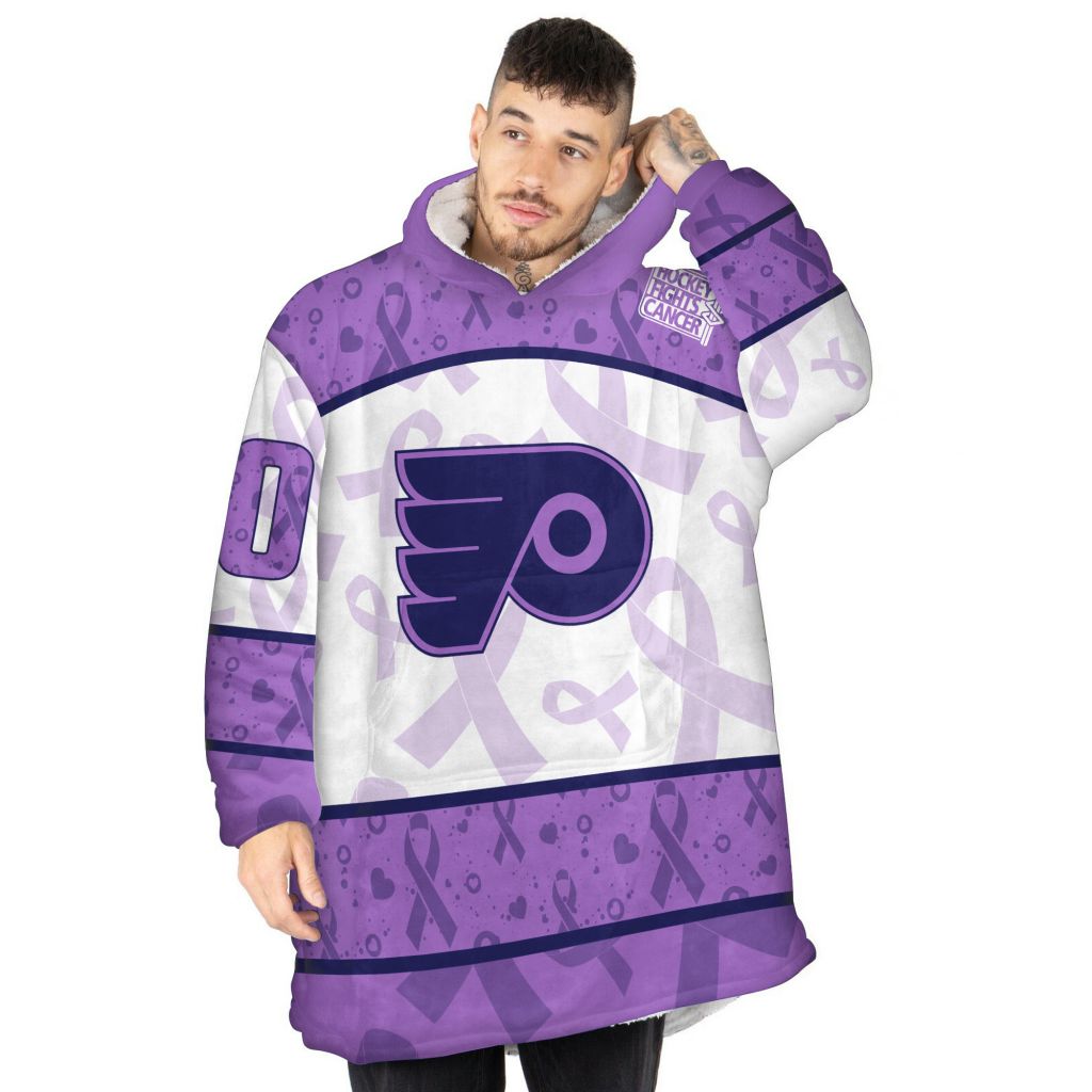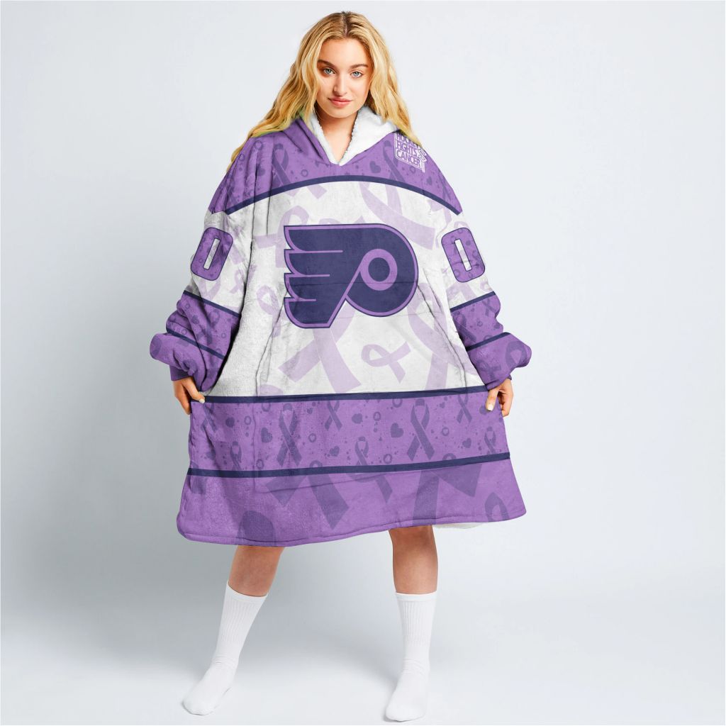 Custom NHL Philadelphia Flyers Lavender Hockey Fights Cancer Oodie Blanket Hoodie Wearable Blanket