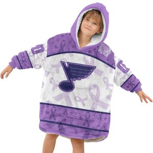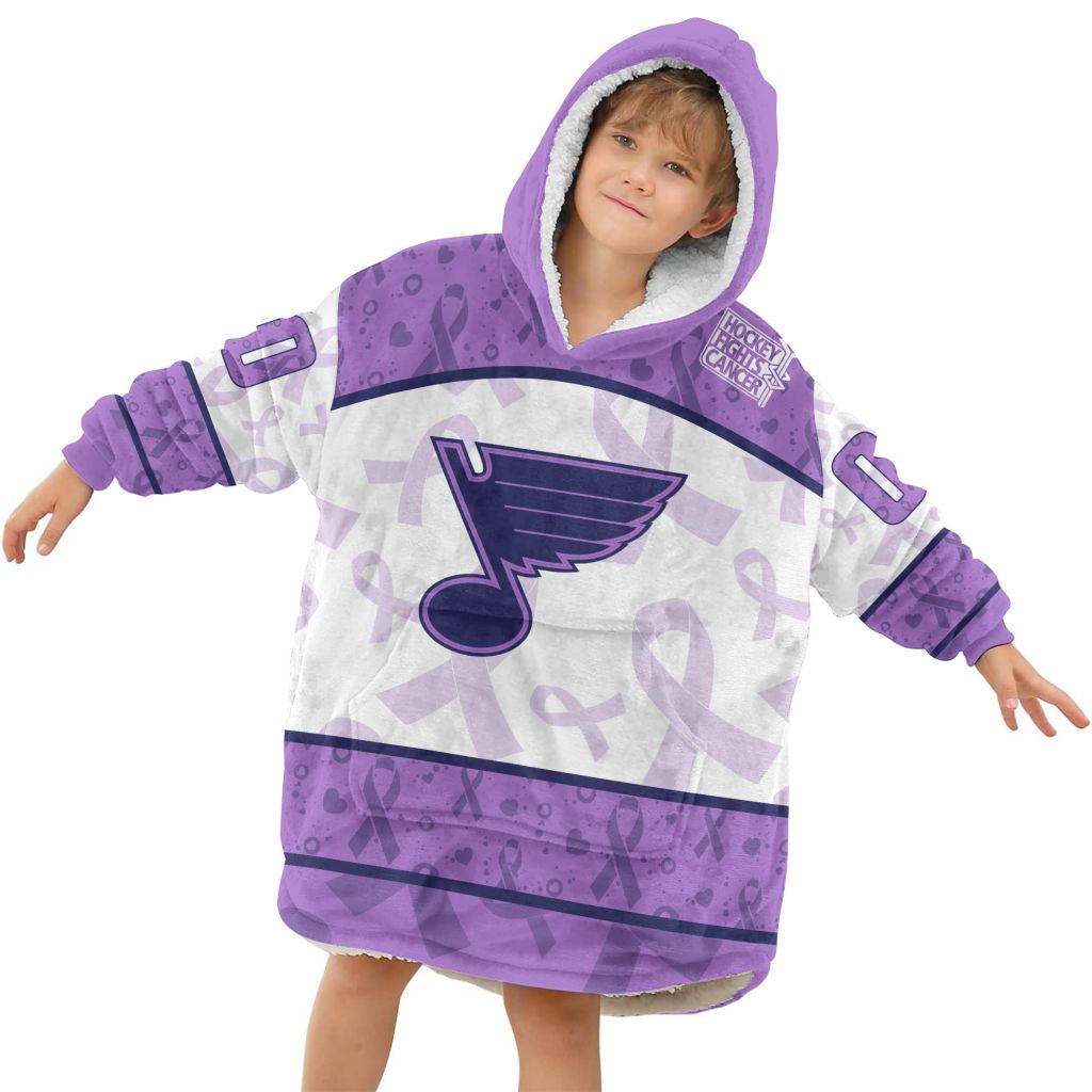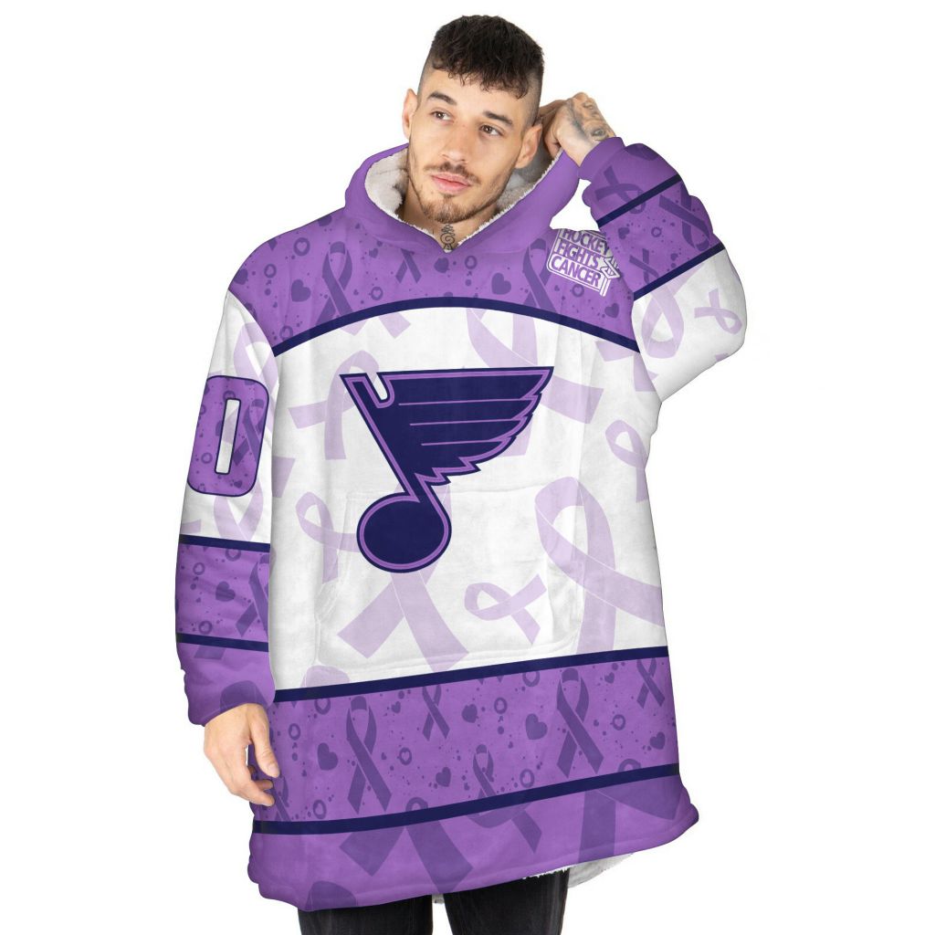 Custom NHL St. Louis Blues Lavender Hockey Fights Cancer Oodie Blanket Hoodie Wearable Blanket