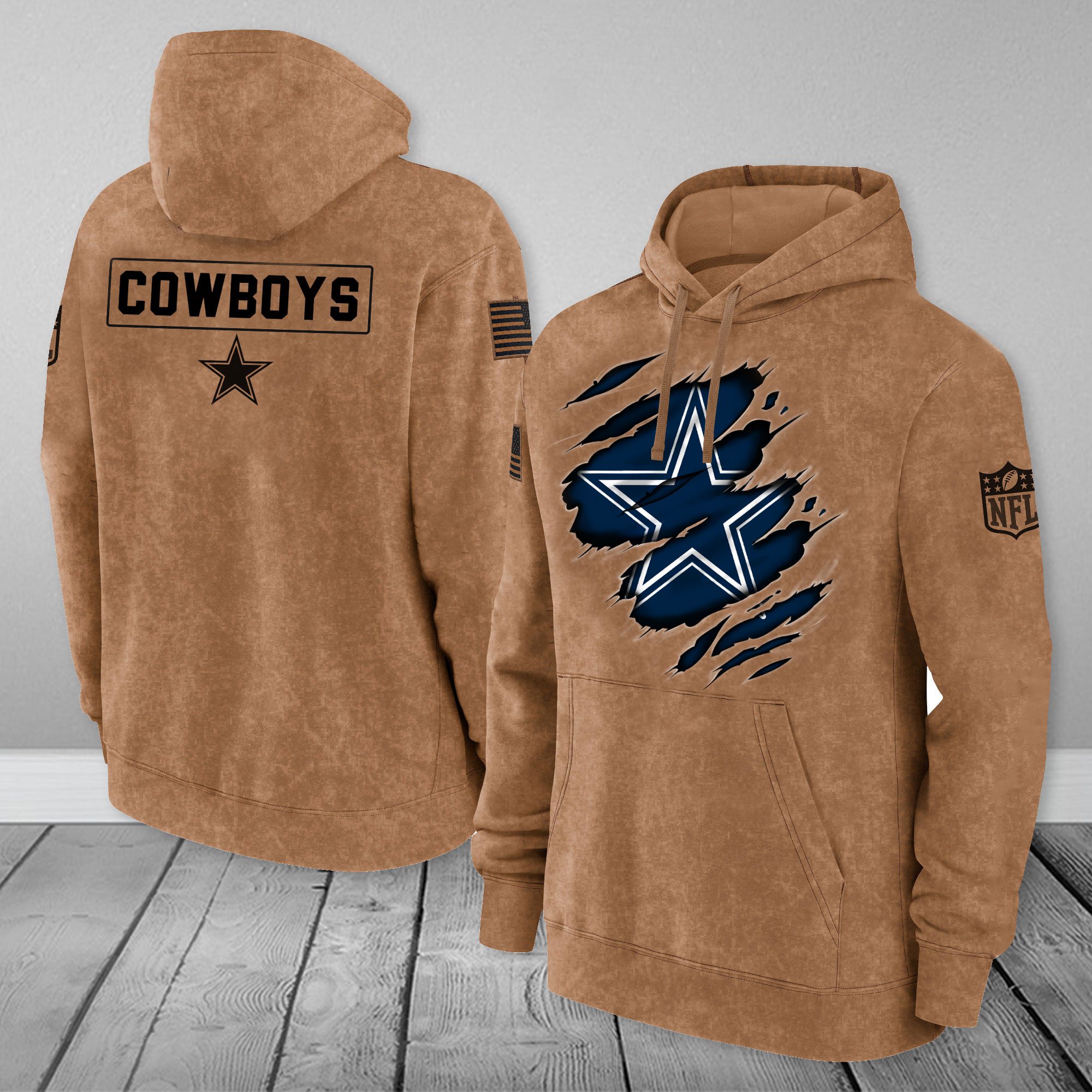 Dallas Cowboys NFL Brown Distressed Logo Salute To Service 2023 3D Hoodie HSL1041