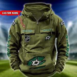 Dallas Stars NHL Hockey Vintage Quarter Zip Hoodie Retro Hoodie Custom Name WRH1007