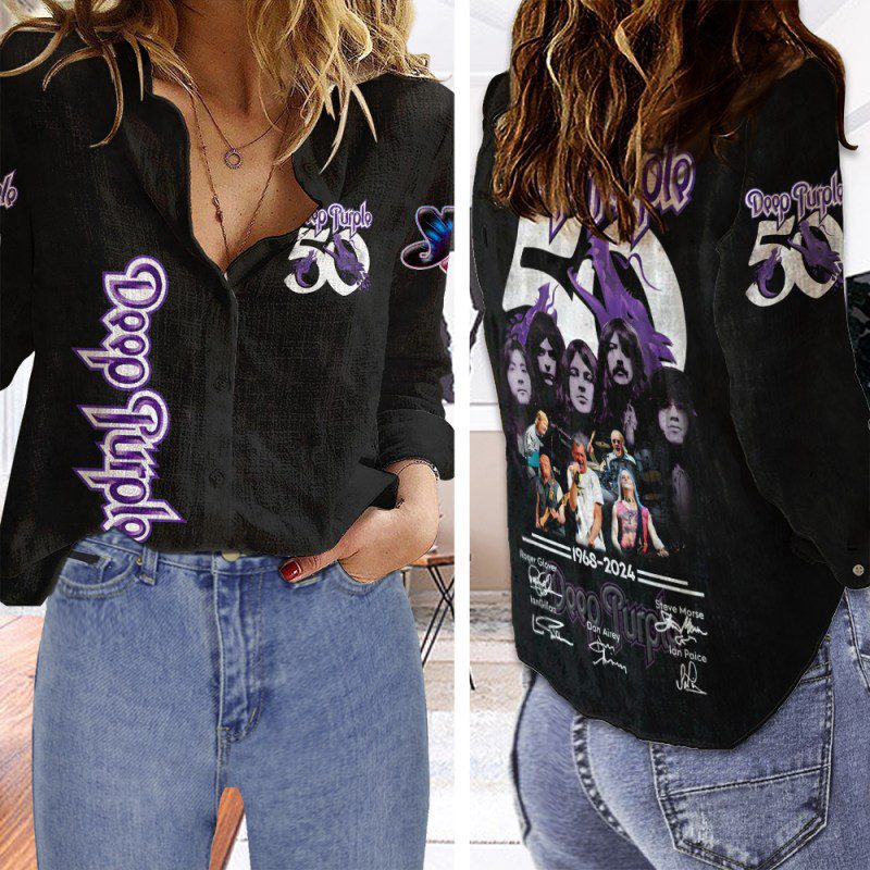 Deep Purple Women Casual Shirt 3D Linen Shirt GWS1139