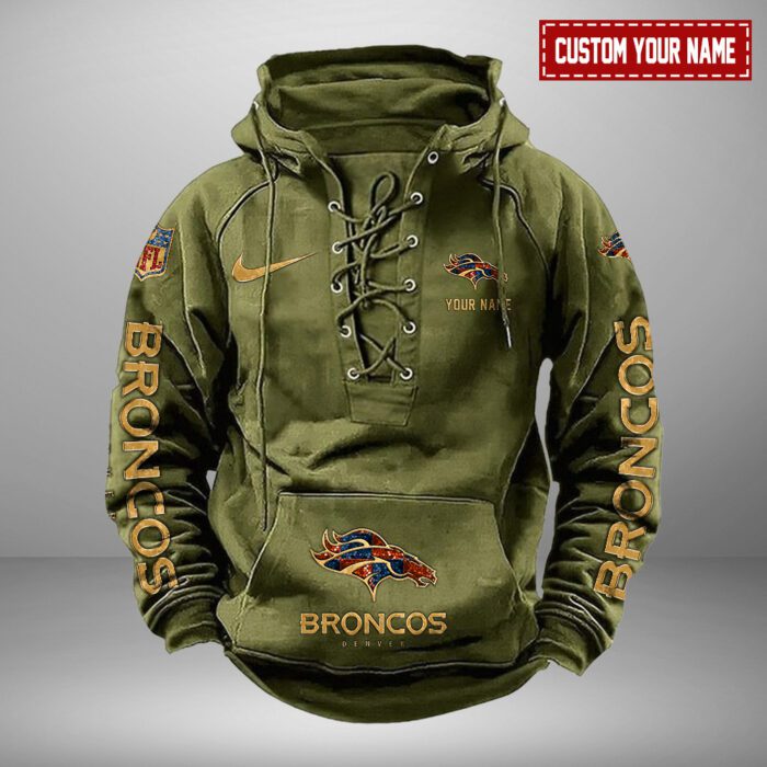 Denver Broncos NFL Personalized Swoosh Hooded Lace Up Hoodie Vintage Retro Hoodie