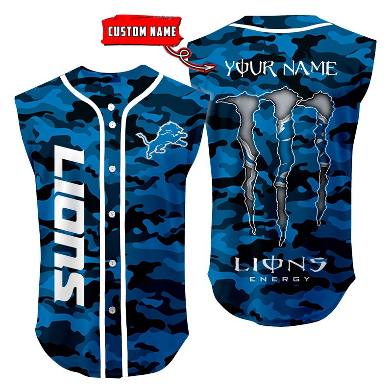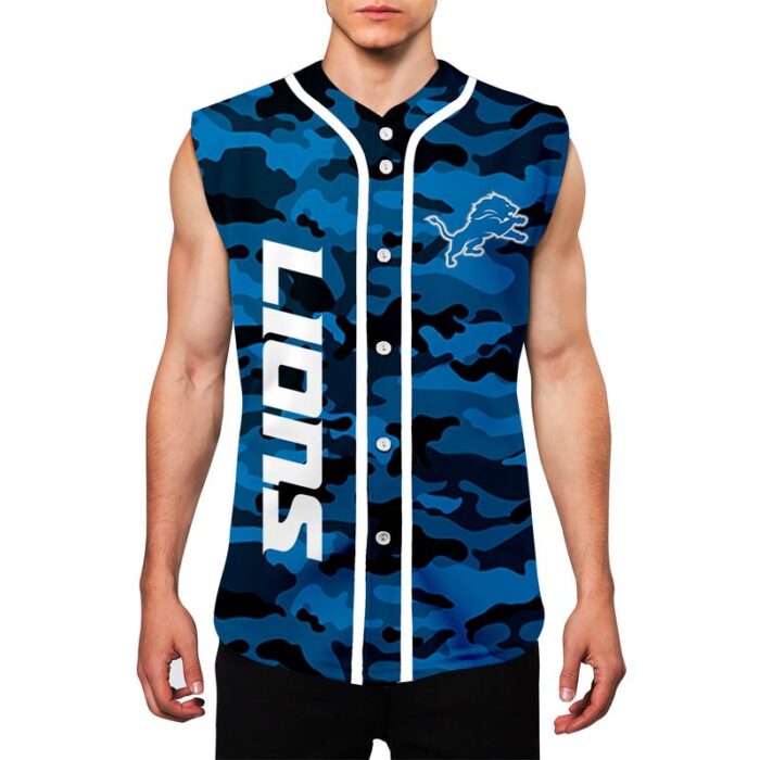 Detroit Lions Camo Sleeveless Baseball Jersey Tank Top Custom Name BBTJ1075