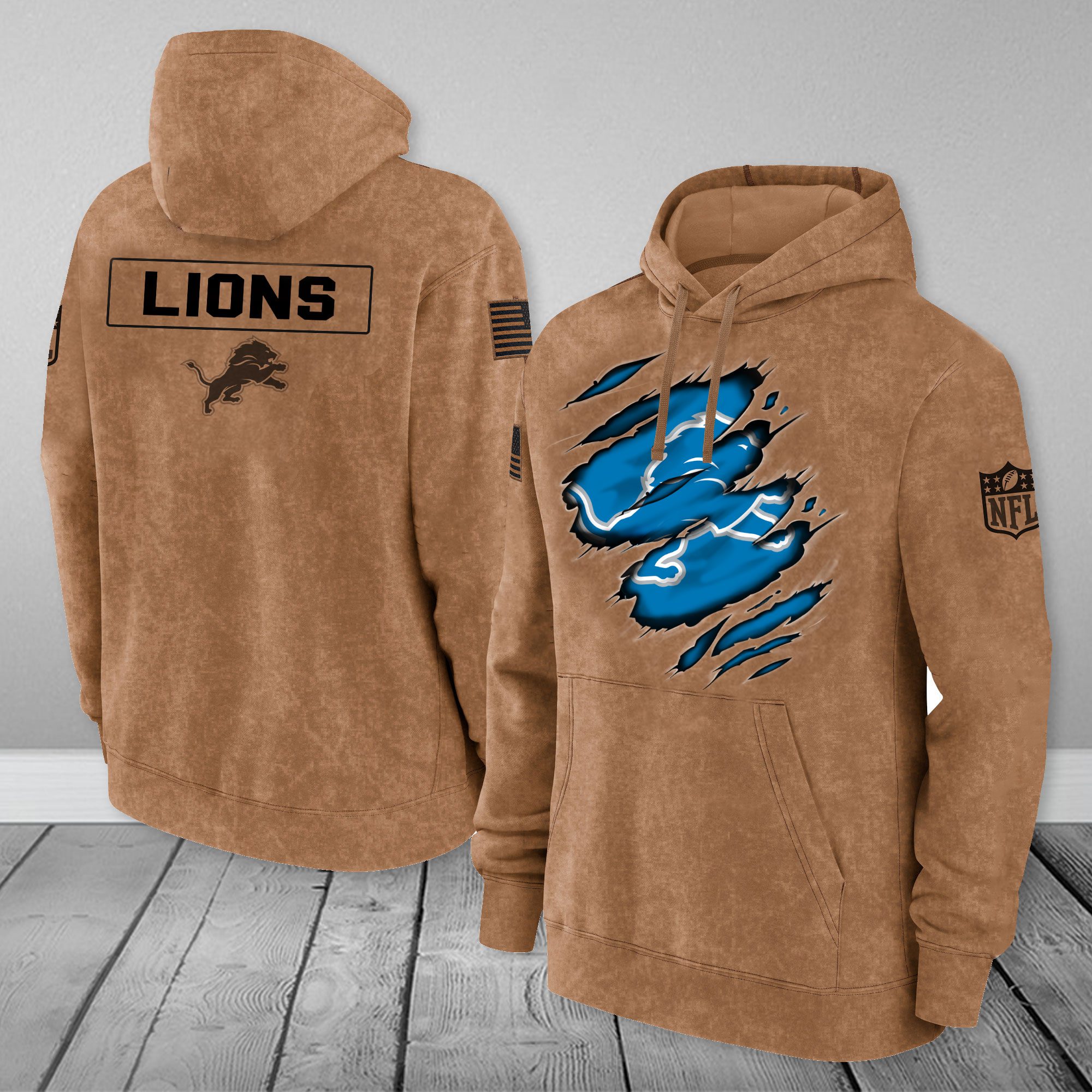 Detroit Lions NFL Brown Distressed Logo Salute To Service 2023 3D Hoodie HSL1043