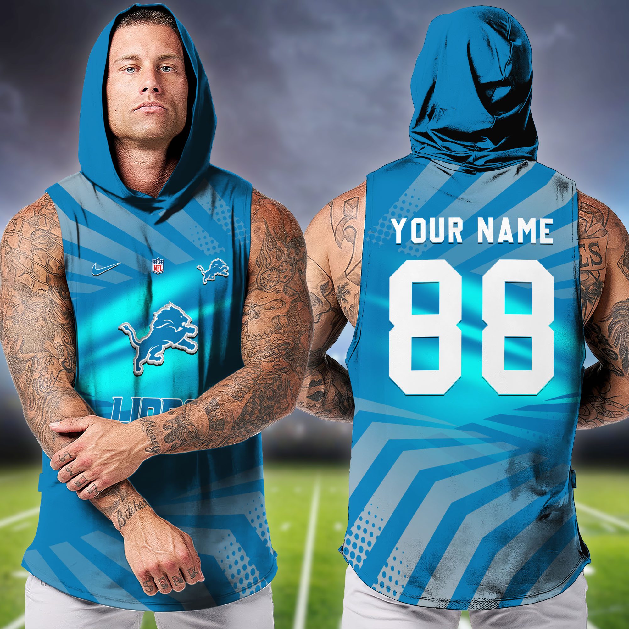 Detroit Lions NFL Hoodie Tank Top Workout Outfit WHT1201