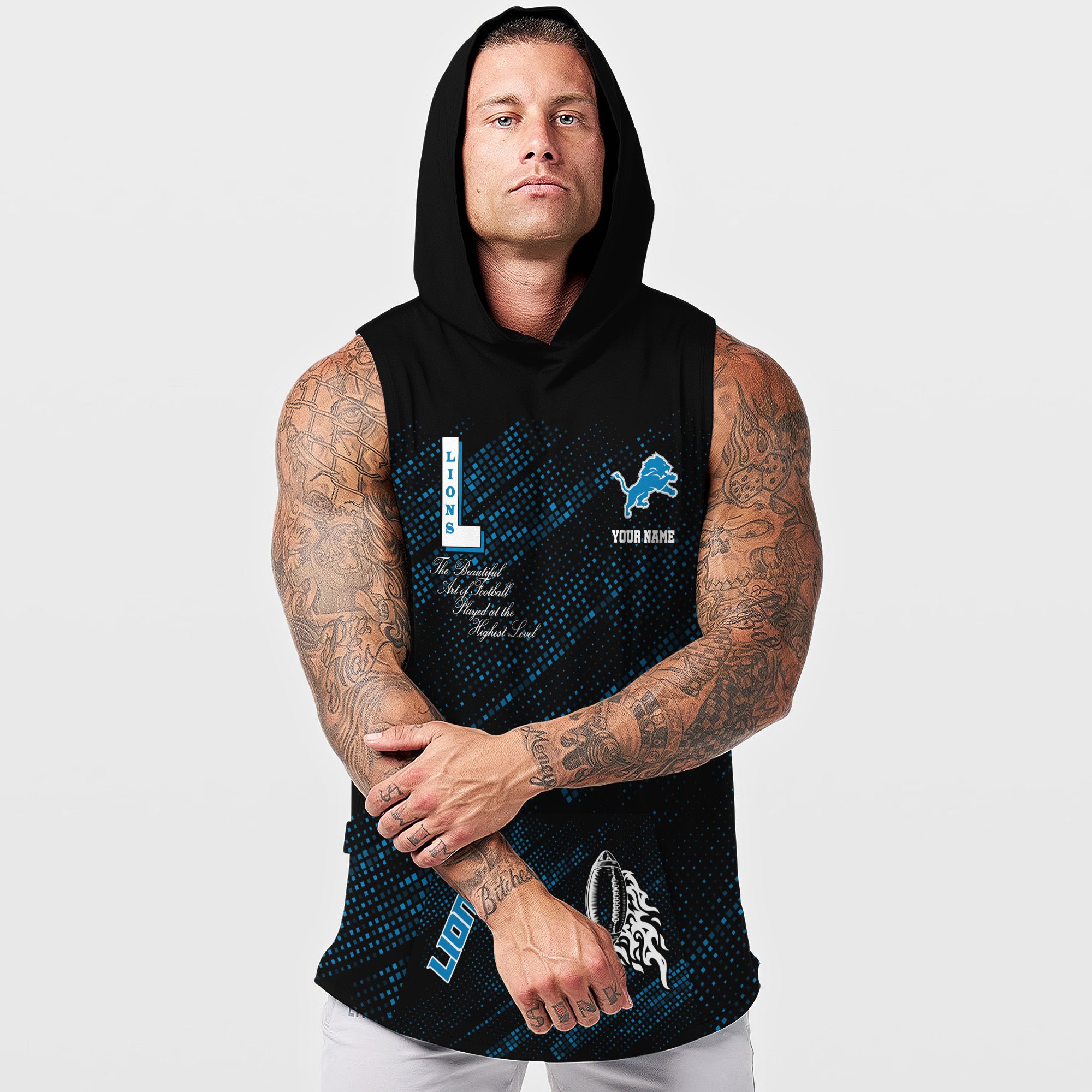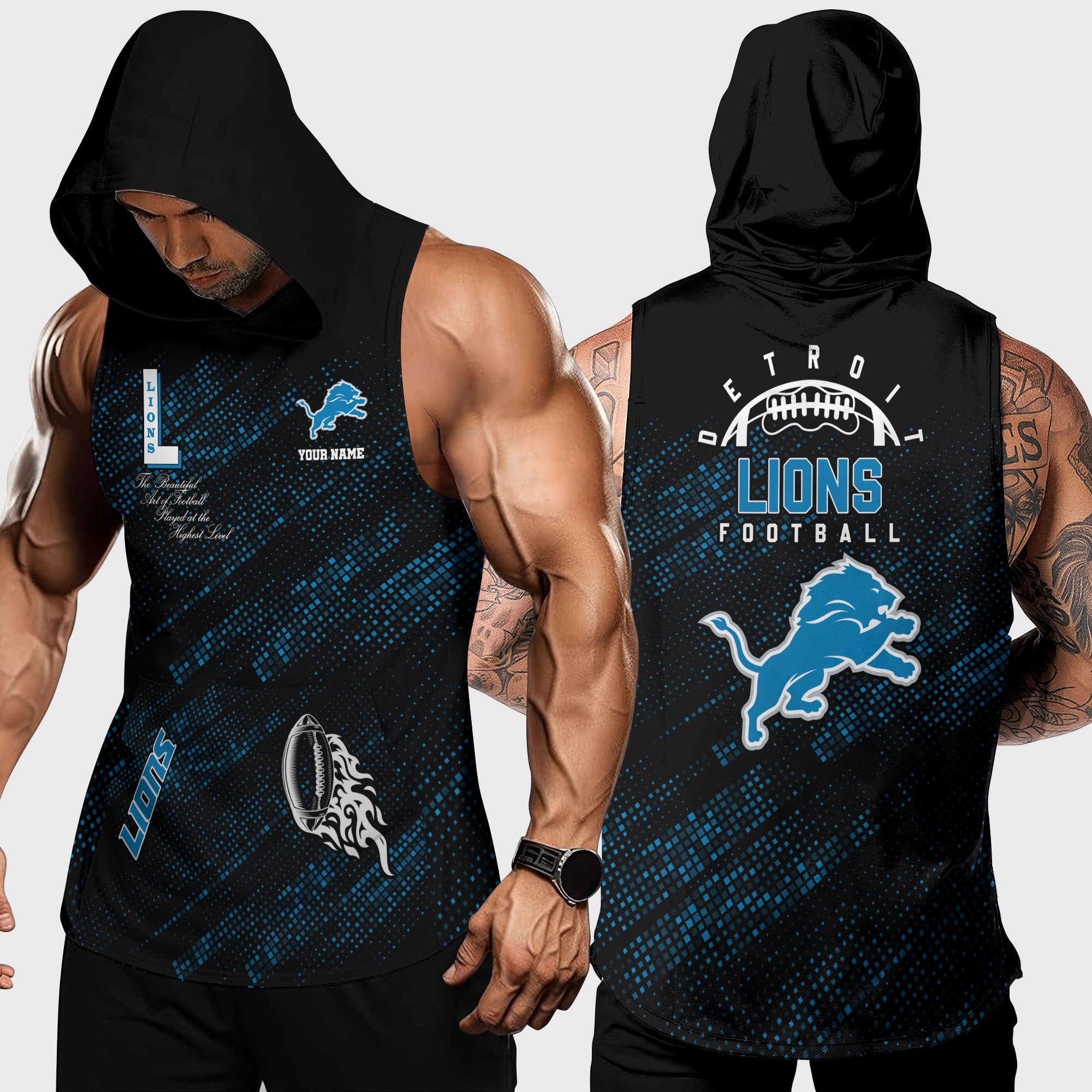 Detroit Lions NFL Men Workout Hoodie Tank Tops Custom Name WHT1074