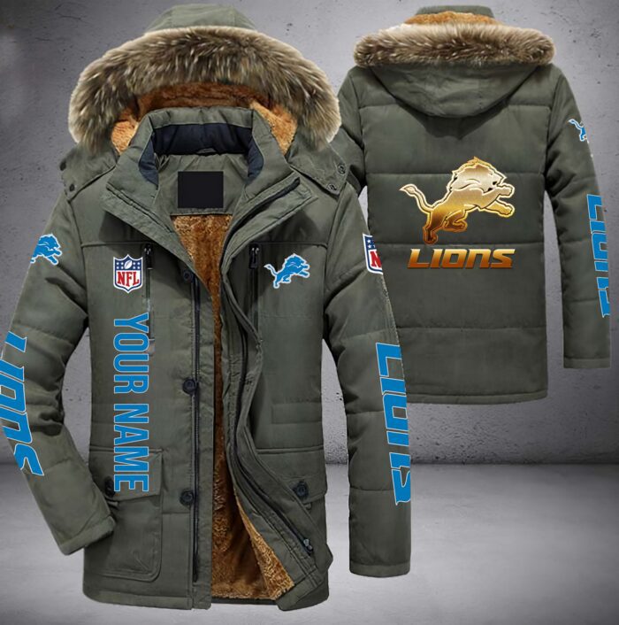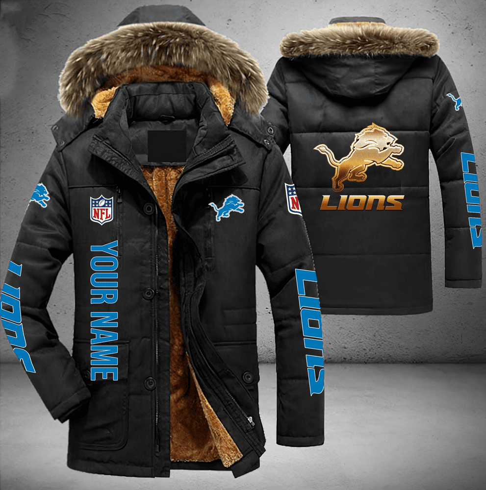 Detroit Lions NFL Personalized Golden Logo Parka Jacket Fleece Coat Winter