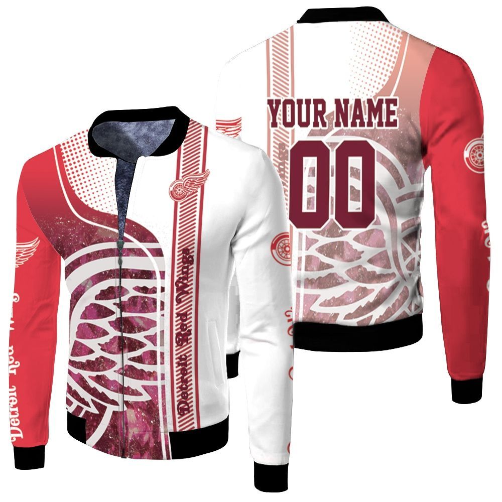 Detroit Red Wings Style Personalized Red And White Fleece Bomber Jacket FBJ1574