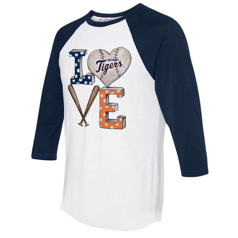 Detroit Tigers Baseball LOVE 3/4 Navy Blue Sleeve Raglan Shirt