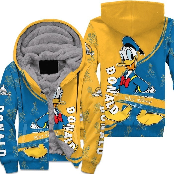 Donald Duck Blue Yellow Pattern Stripes Disney Fleece Pullover Zipped Up Unisex Hoodie