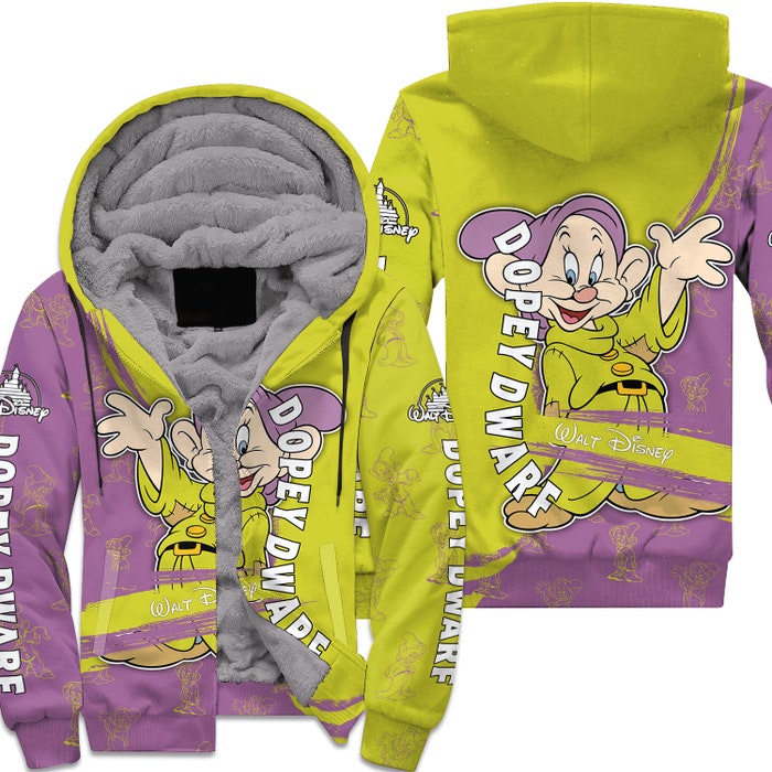 Dopey Dwarf Green Purple Pattern Stripes Disney Fleece Pullover Zipped Up Unisex Hoodie
