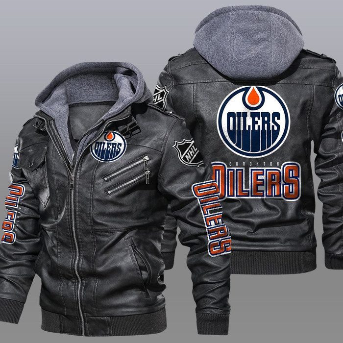 Edmonton Oilers Black Brown Leather Jacket LIZ183