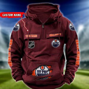 Edmonton Oilers NHL Hockey Vintage Quarter Zip Hoodie Retro Hoodie Custom Name WRH1010