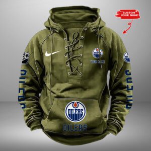 Edmonton Oilers NHL Swoosh Hooded Lace Up Retro Vintage Hoodie Custom Name