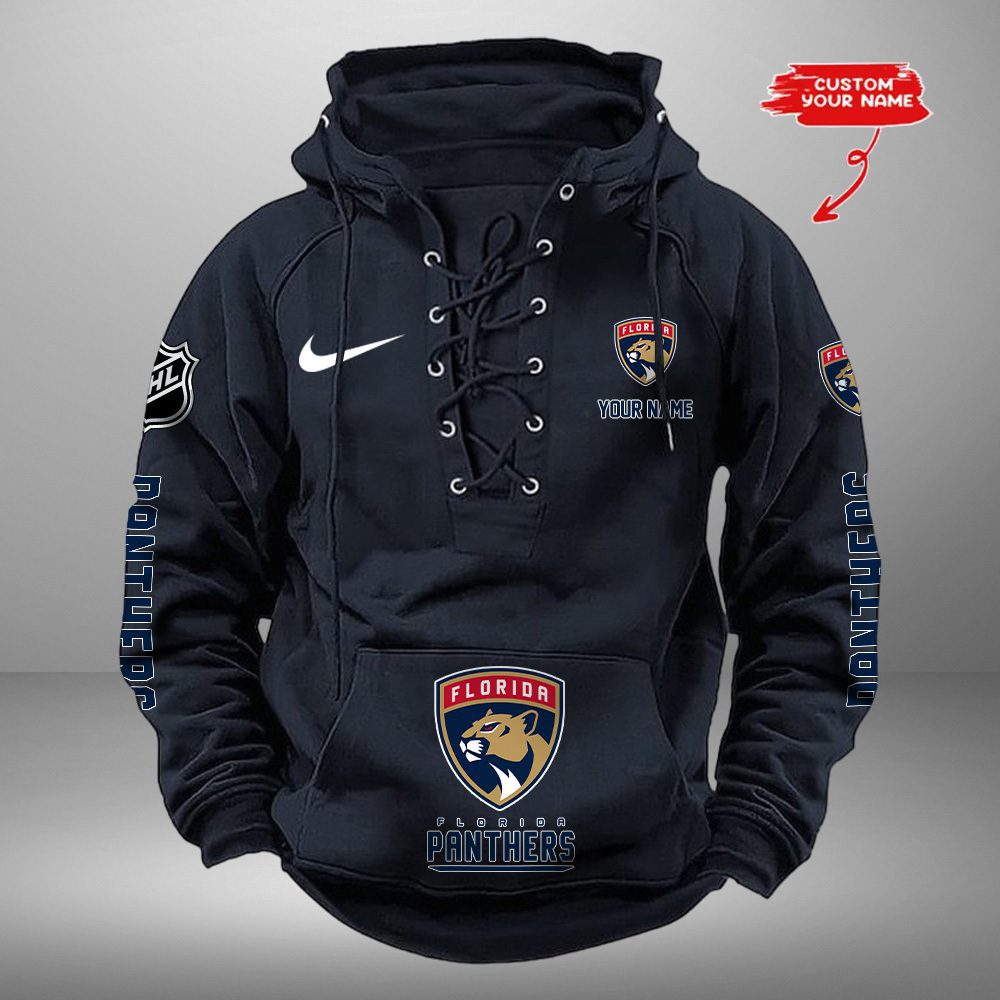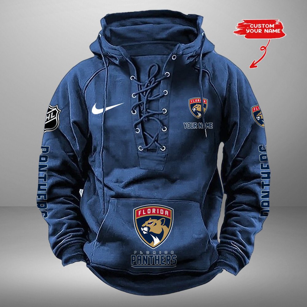 Florida Panthers NHL Swoosh Hooded Lace Up Retro Vintage Hoodie Custom Name