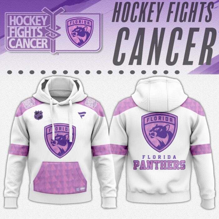 Florida Panthers x Hockey Fights Cancer White Unisex Hoodie Cap Joggers Set 2024/25 HCJ1359
