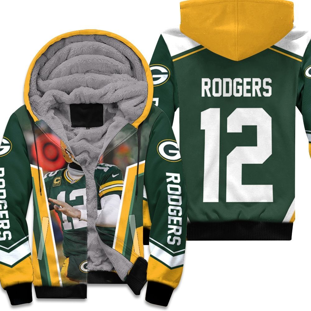 Green Bay Packer Aaron Rodgers Legend 12 Green Yellow Unisex Fleece Hoodie