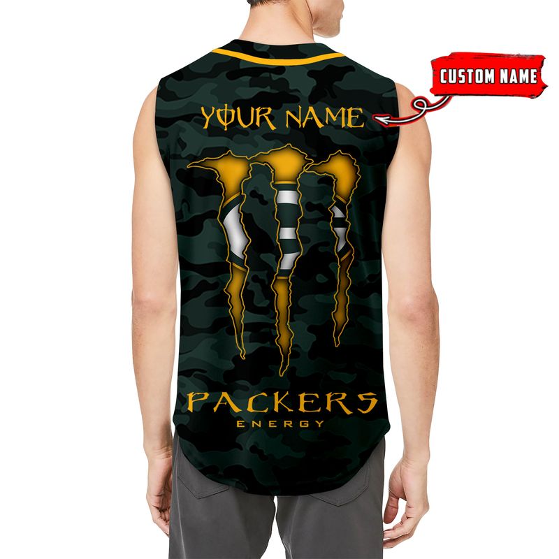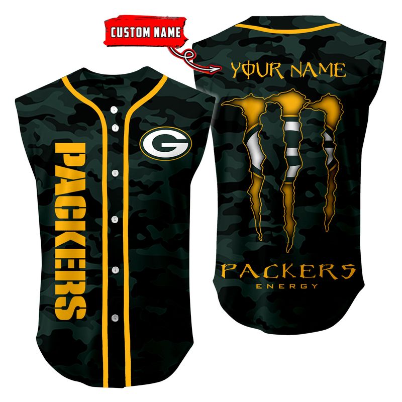 Green Bay Packers Camo Sleeveless Baseball Jersey Tank Top Custom Name BBTJ1076