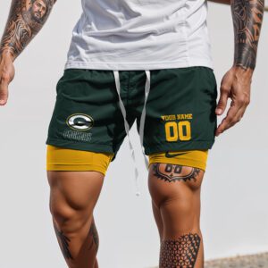Green Bay Packers NFL Double Layer Shorts Custom Your Name And Number WDS1043
