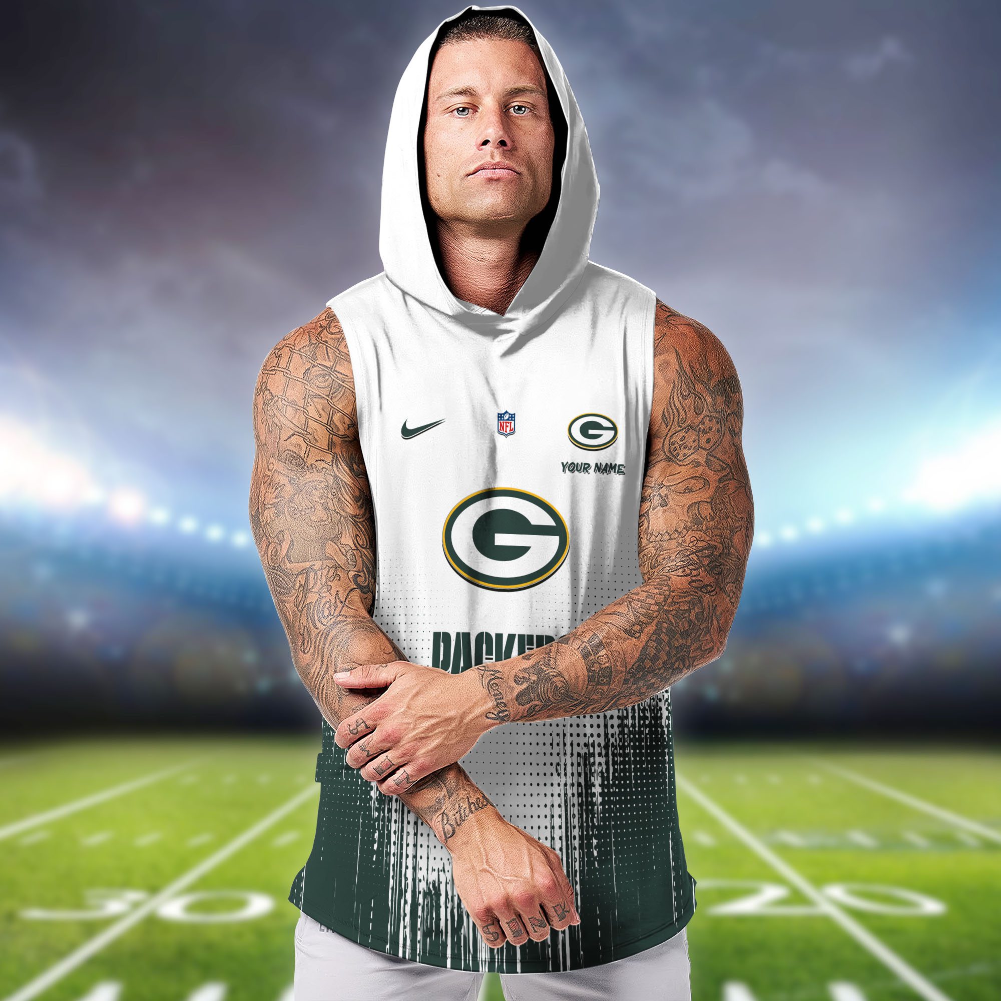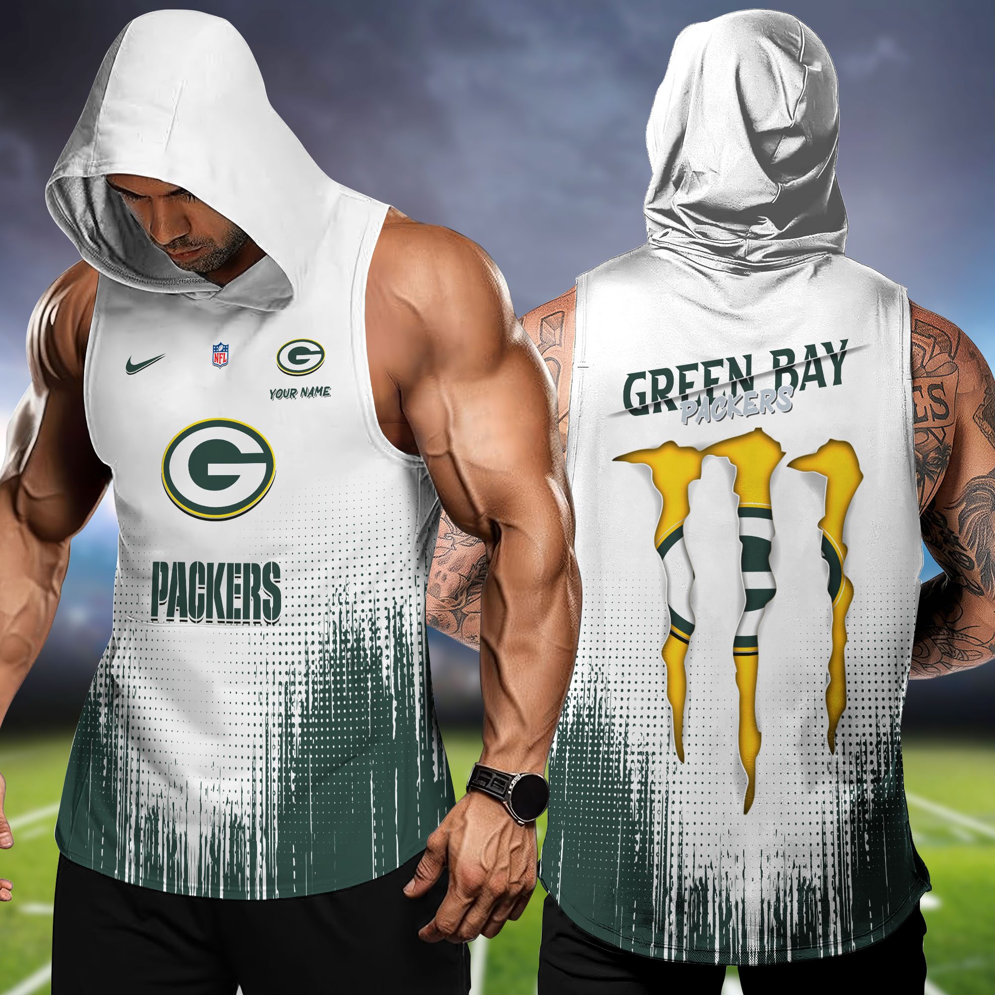 Green Bay Packers NFL Hoodie Tank Top Workout Outfit WHT1171