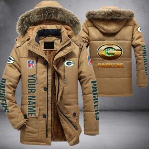 Green Bay Packers NFL Personalized Golden Logo Parka Jacket Fleece Coat Winter
