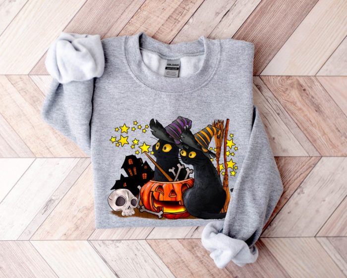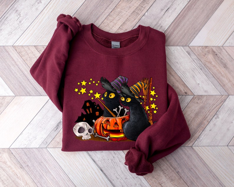 Halloween Sweatshirt Cat Sweatshirt Ghost Shirt Halloween Sweater Cool Halloween Cat Shirt Cat Lover Black Cat