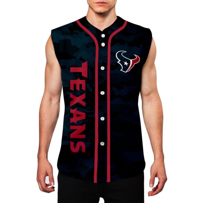 Houston Texans Camo Sleeveless Baseball Jersey Tank Top Custom Name BBTJ1077